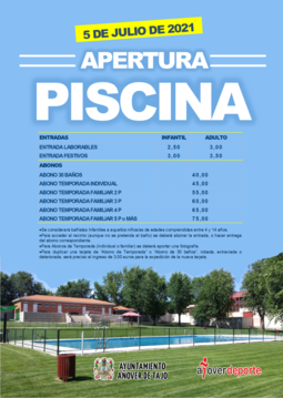 La piscina cerrará del 23 al 28 de agosto.